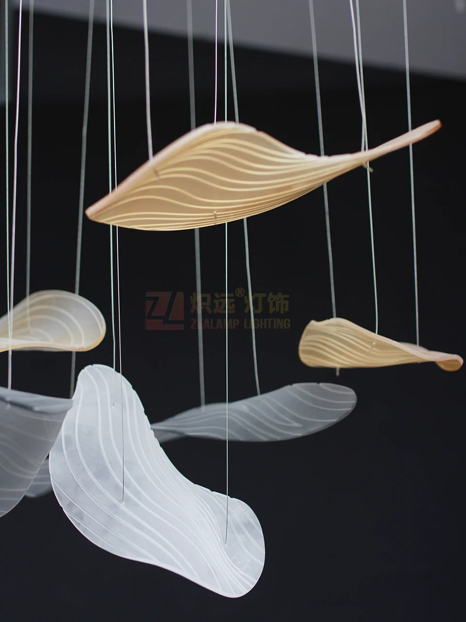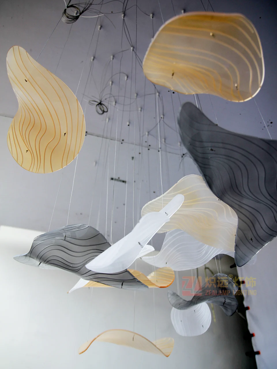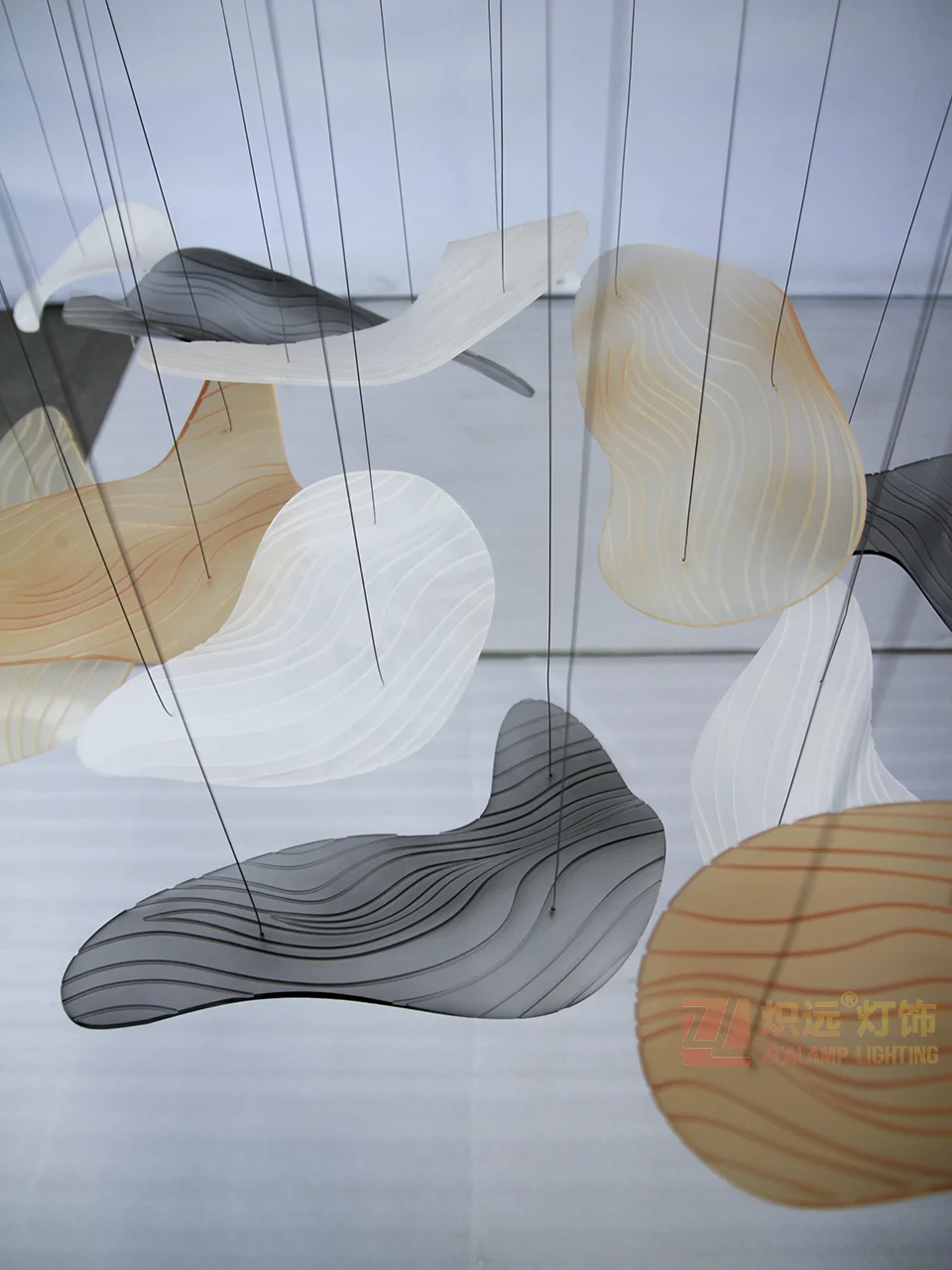 This artistic decorative chandelier is a sophisticated fusion of spatial aesthetics and craftsmanship. Crafted from acrylic, it’s meticulously bent to create irregular, dynamic forms resembling artistic slices of nature’s rhythm. A multi-color palette of black, white, and brown, complemented by delicate lines and textures, creates a modern, abstract aesthetic while alluding to the poetic textures of landscapes. Each “art slice” hangs suspended in mid-air, like a nimble artistic spirit, illuminating the depths and style of the space through a play of light and shadow.