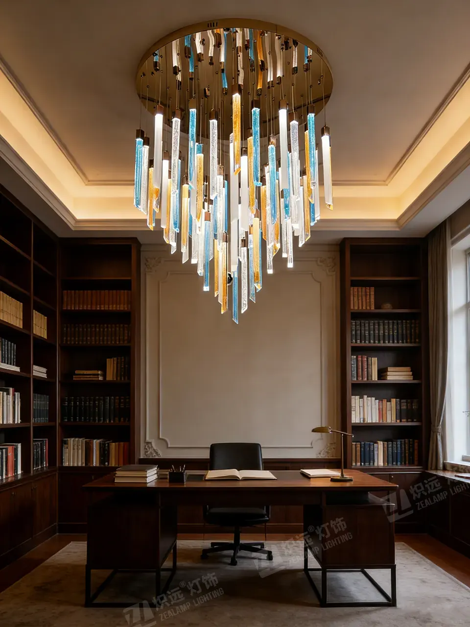 It fits villa living rooms and studies to elevate the space’s style; it’s also ideal for hotel lobbies, offering understated luxury. After installation, it’s both a lighting tool and a visual focal point, matching modern, light luxury and other styles to add texture to the space.