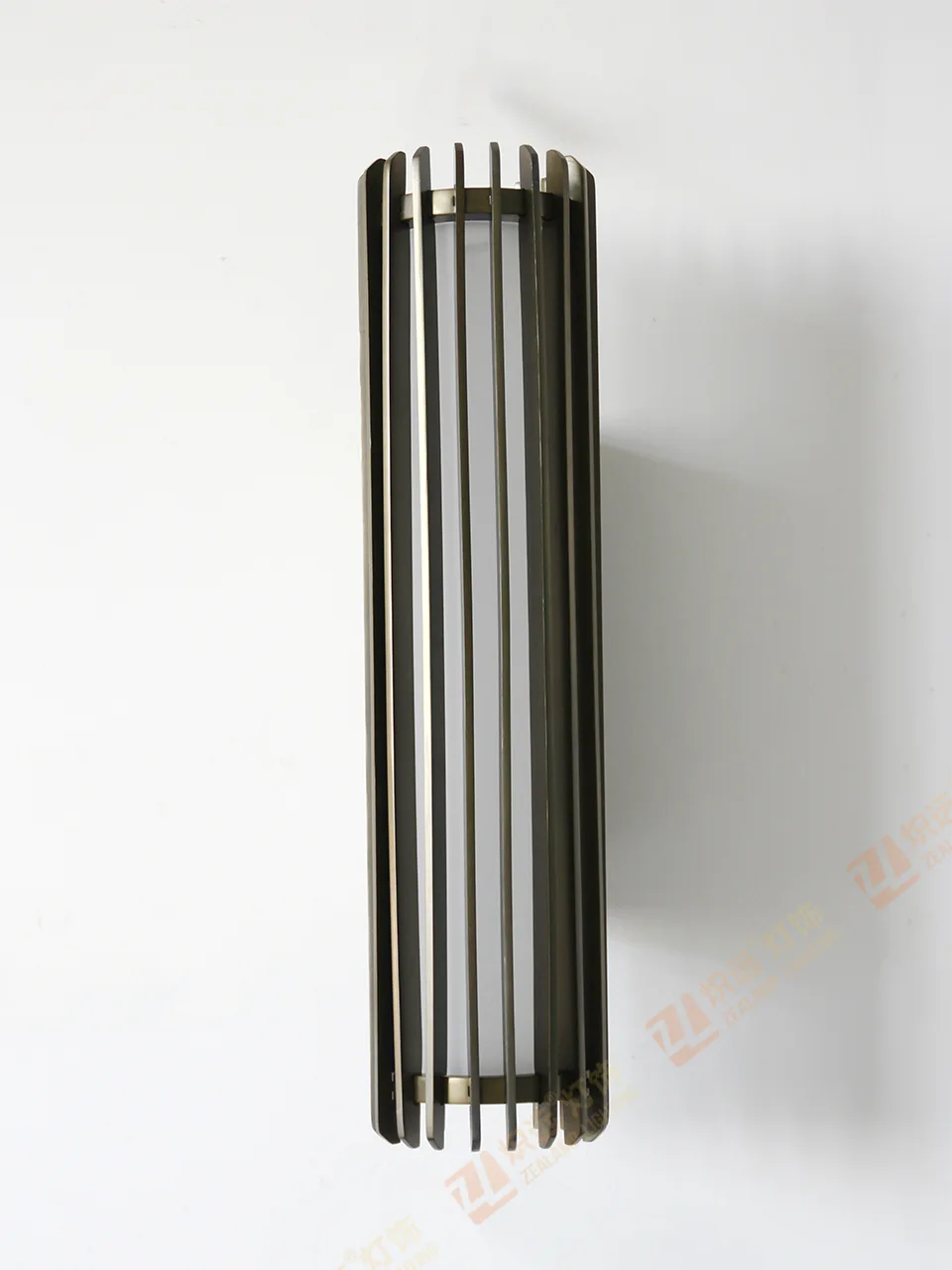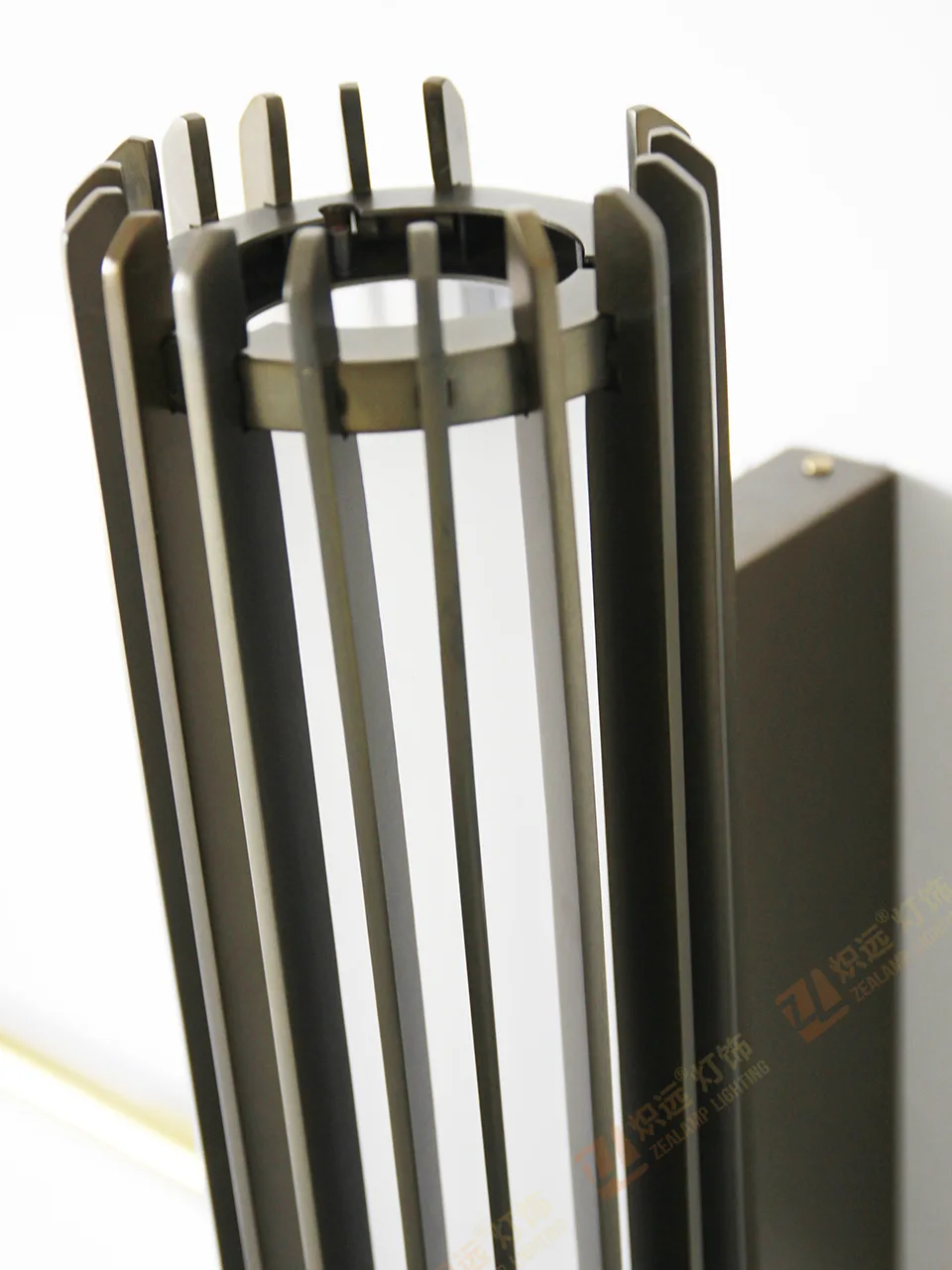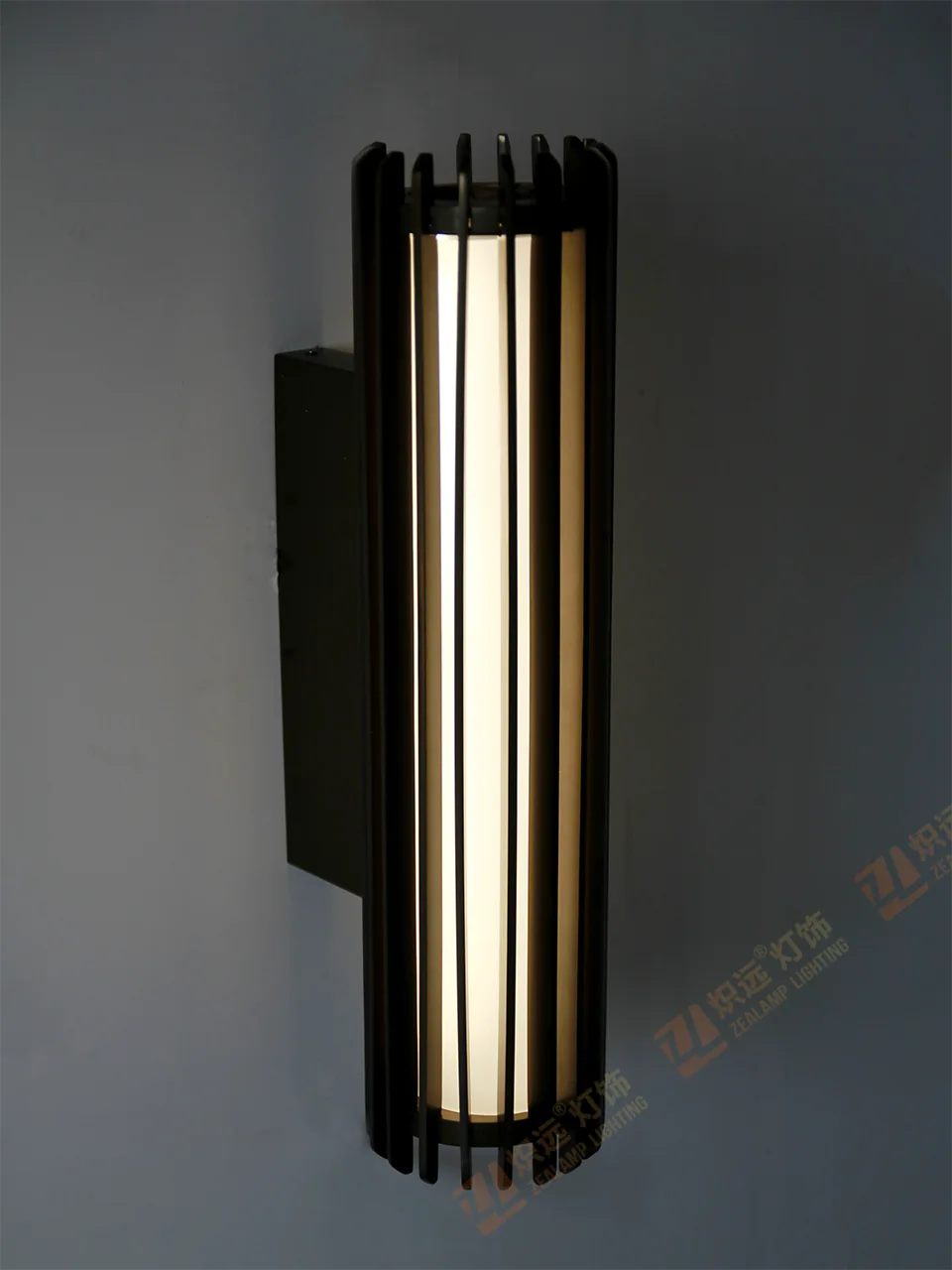 This wall lamp is crafted primarily from stainless steel. Its simple cylindrical design, accented by a black metal grid, creates a unique play of light and shadow as light filters through it.