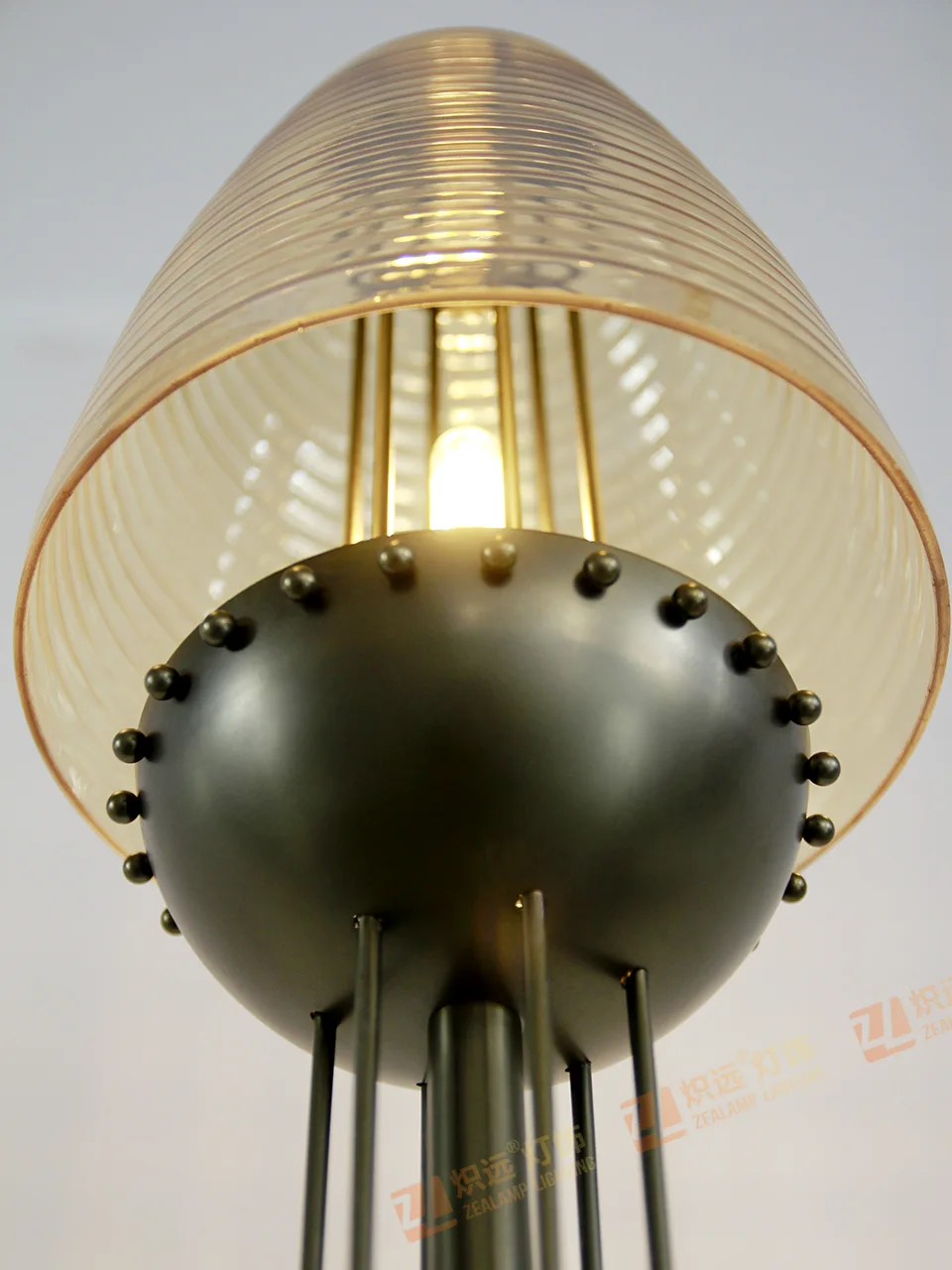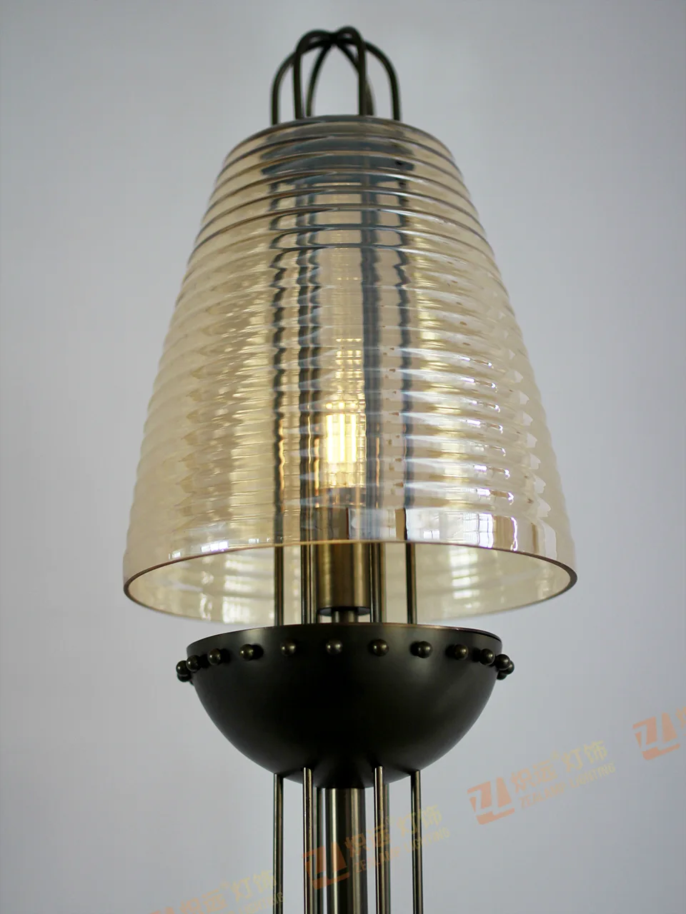 Antique Bronze Stainless Steel Floor Lamp with Glass Shade for Villa & Hotel